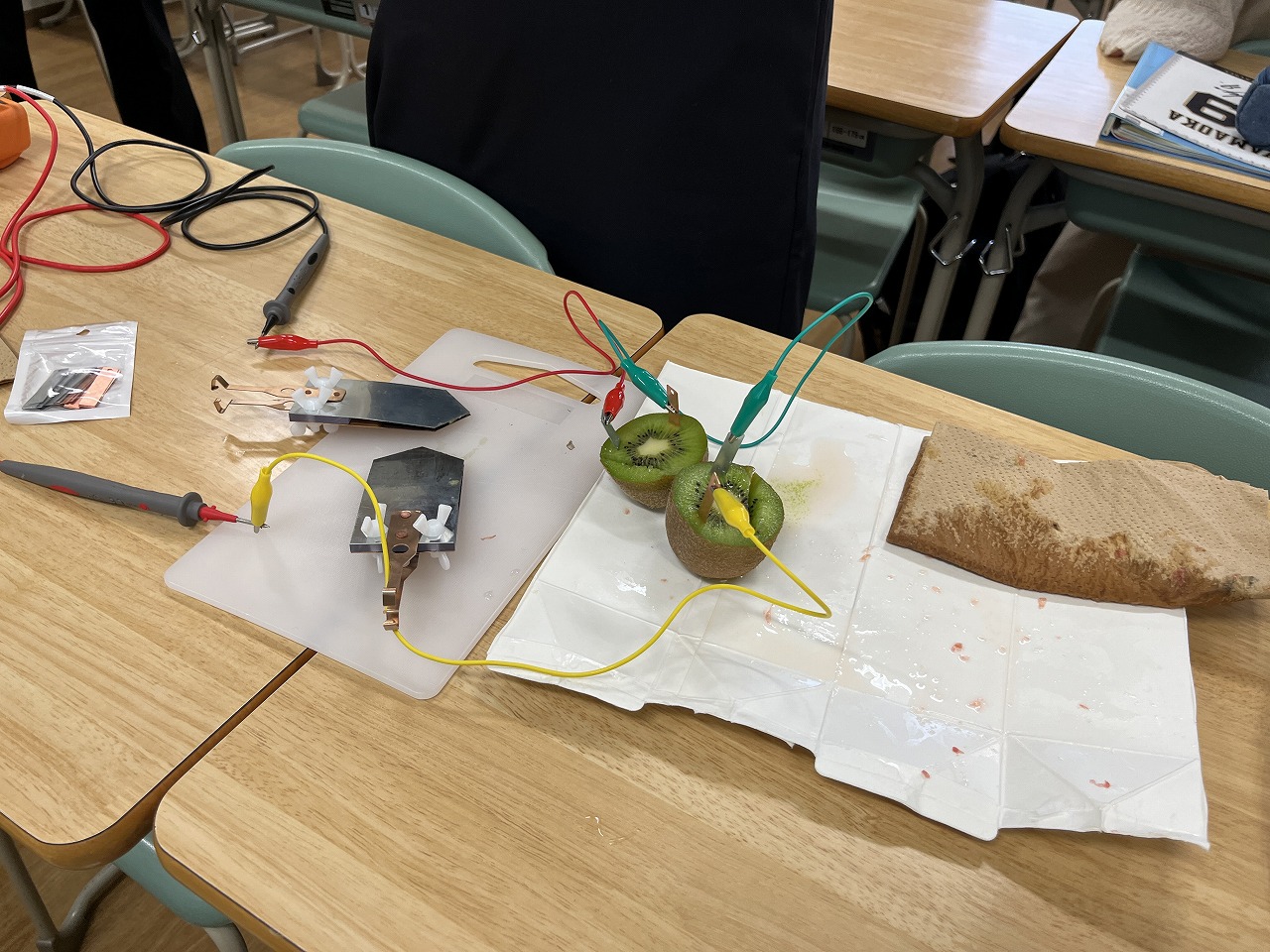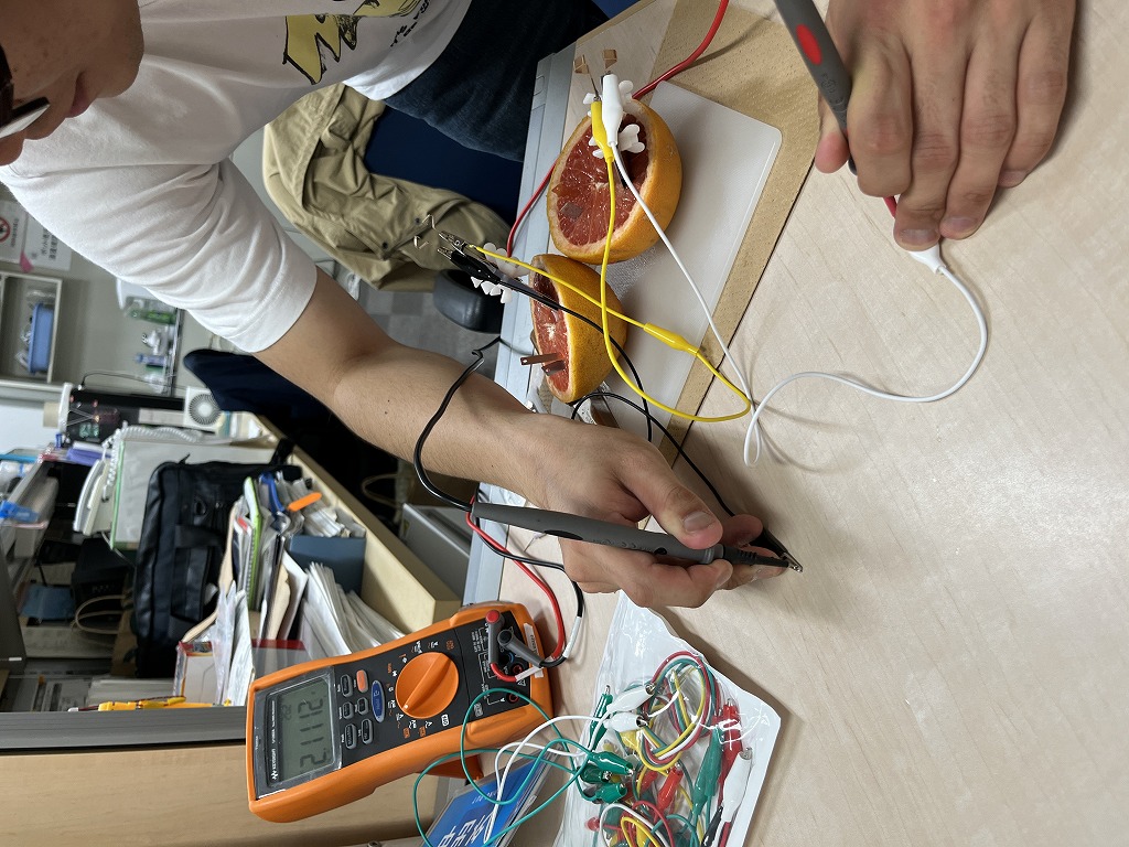 [果物電池の実験: キウイフルーツやスイカを使って]