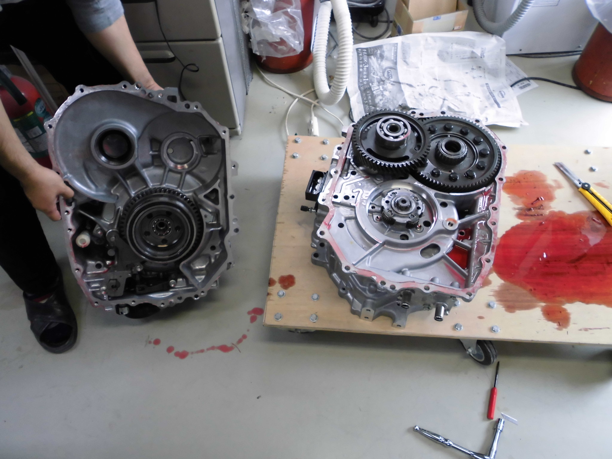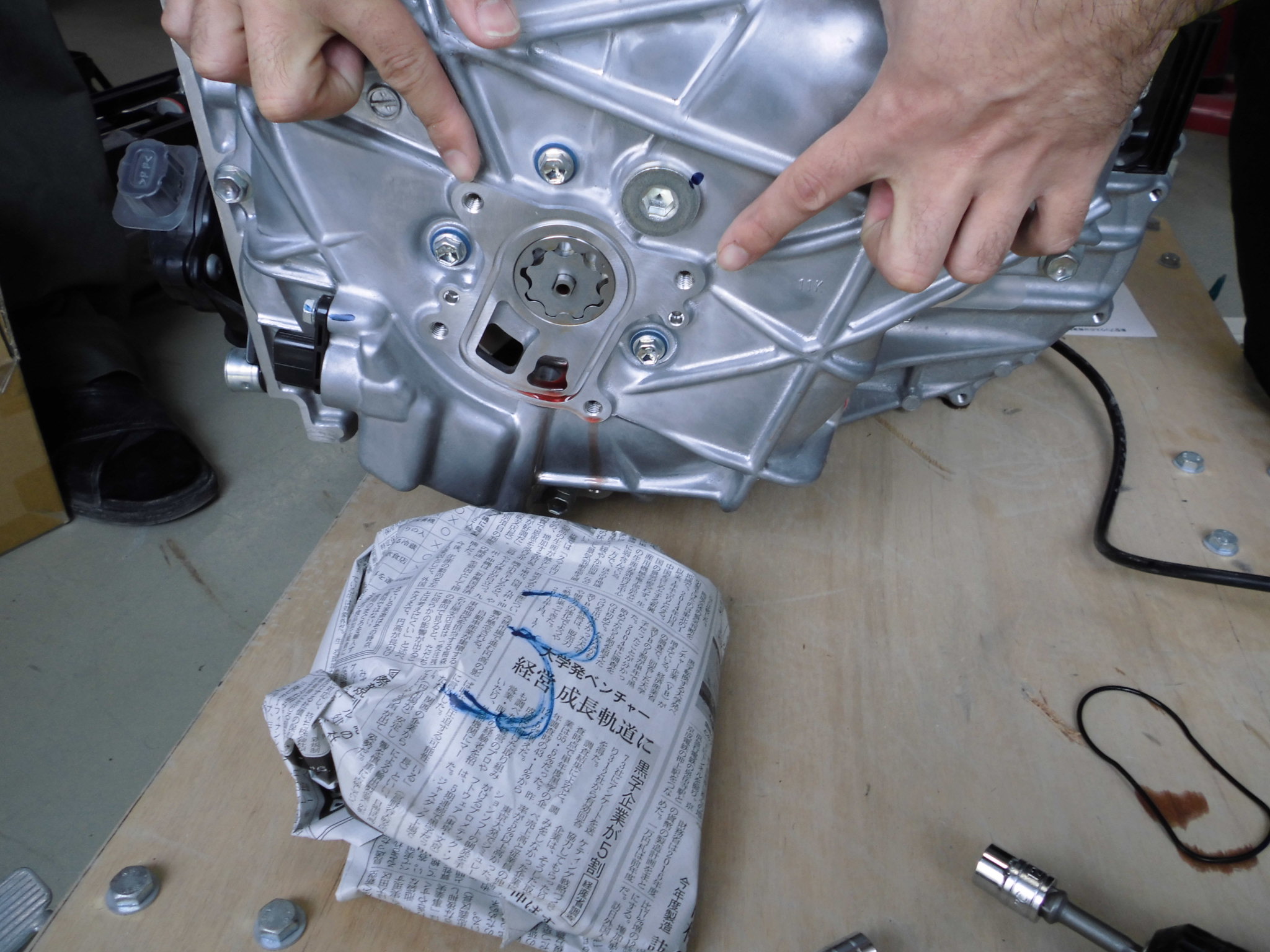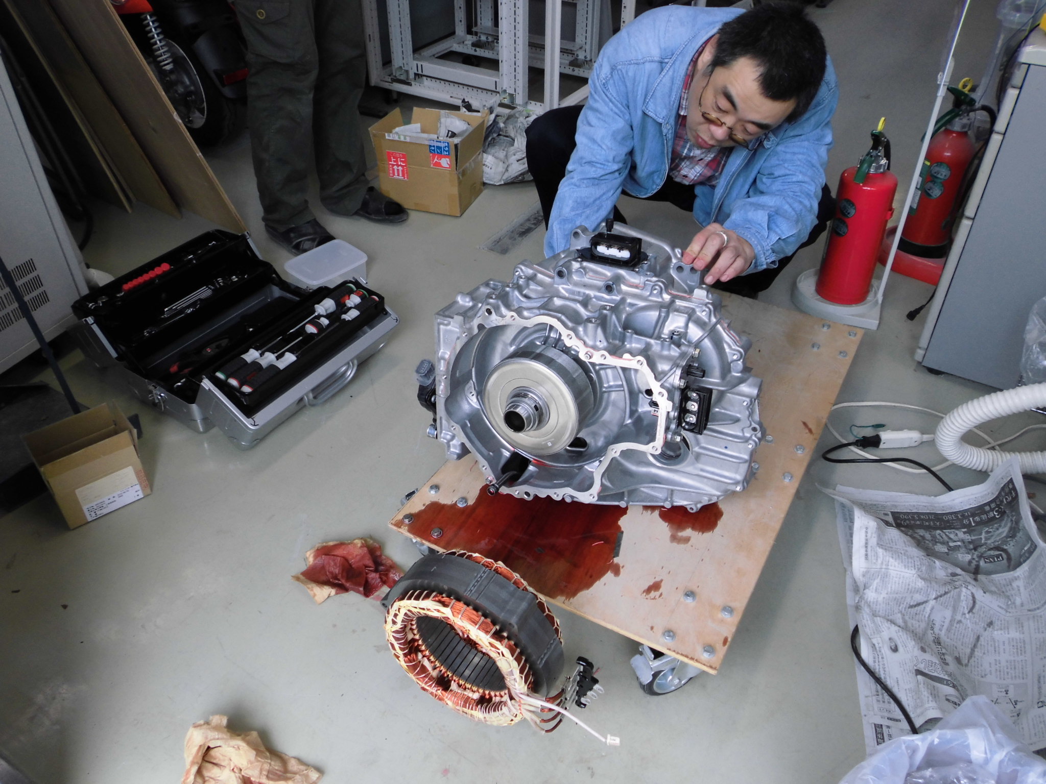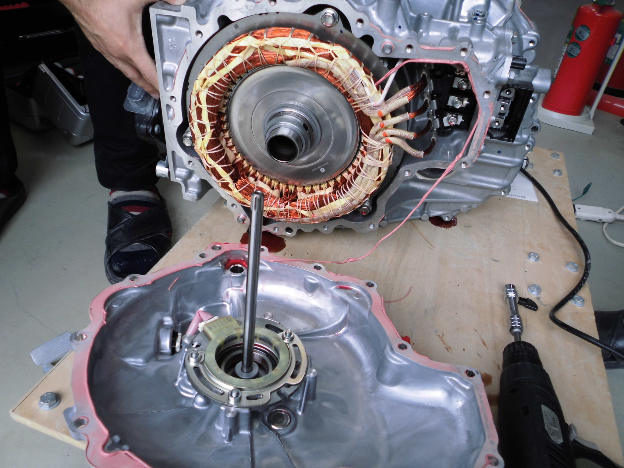 モータ固定子を外すのが無茶苦茶大変だった 舟木先生(握力80kg)井渕先生(元チャリ部)林(元落語研究会)の怪力自慢の精鋭を以ってしても大変だった。コツは気合。
